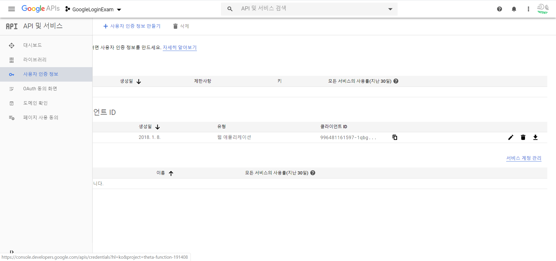 2. 구글 사용자 인증 정보 만들기