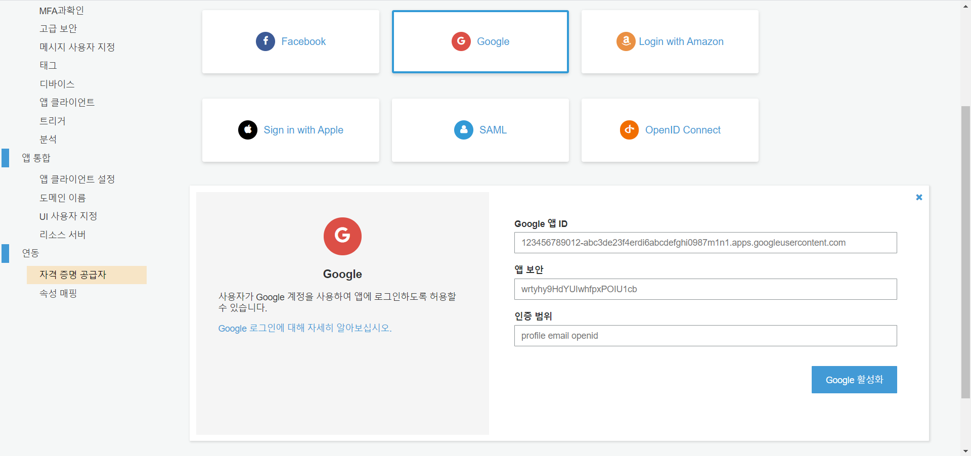 연동 > 자격 증명 공급자 > 구글