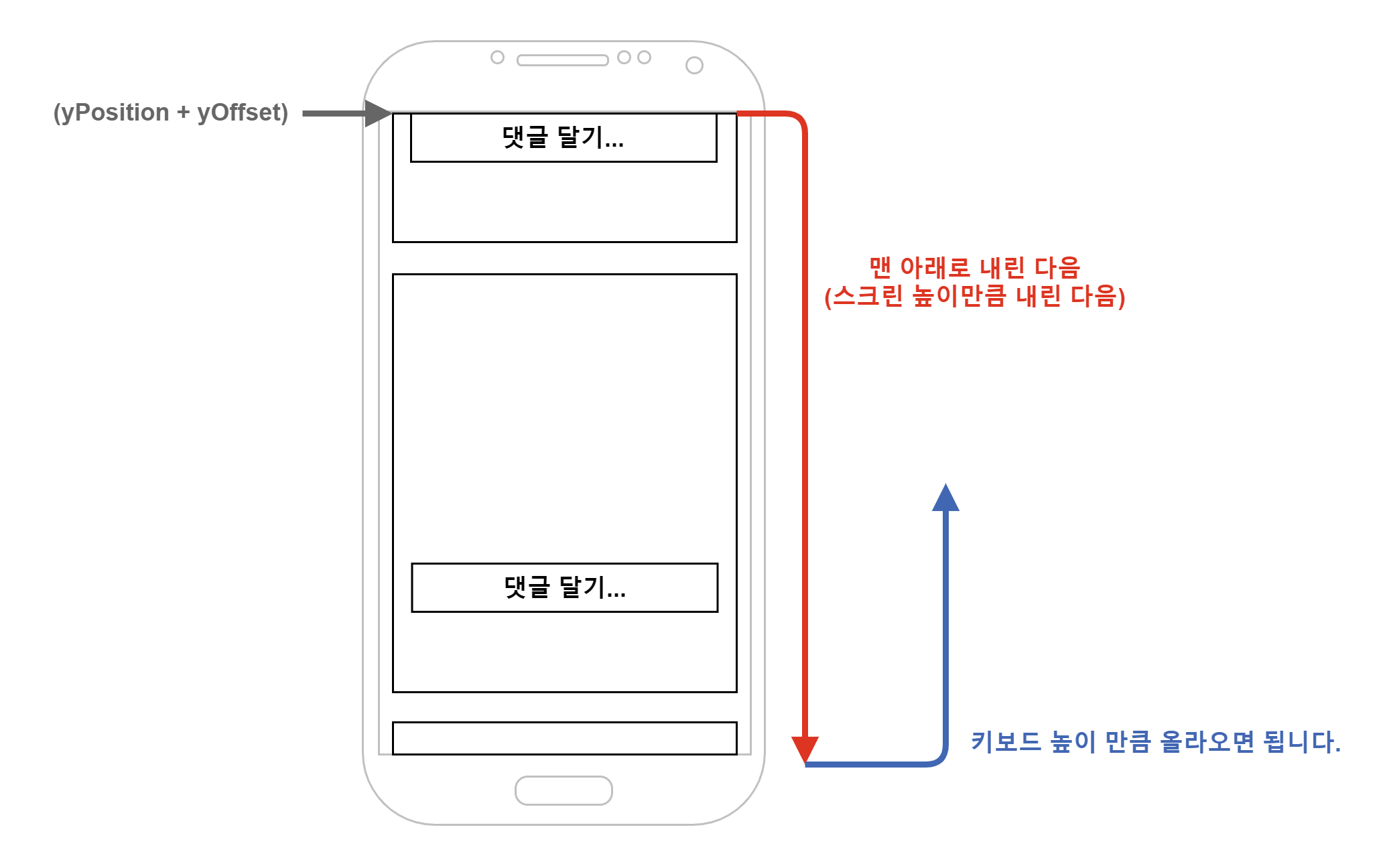 이렇게 댓글 달기... 버튼을 ScrollView의 최상단에 위치시킬 수 있는 좌표인 (yOffset + yPosition)를 Post 컴포넌트별로 저장하고 가져올 수 있습니다.